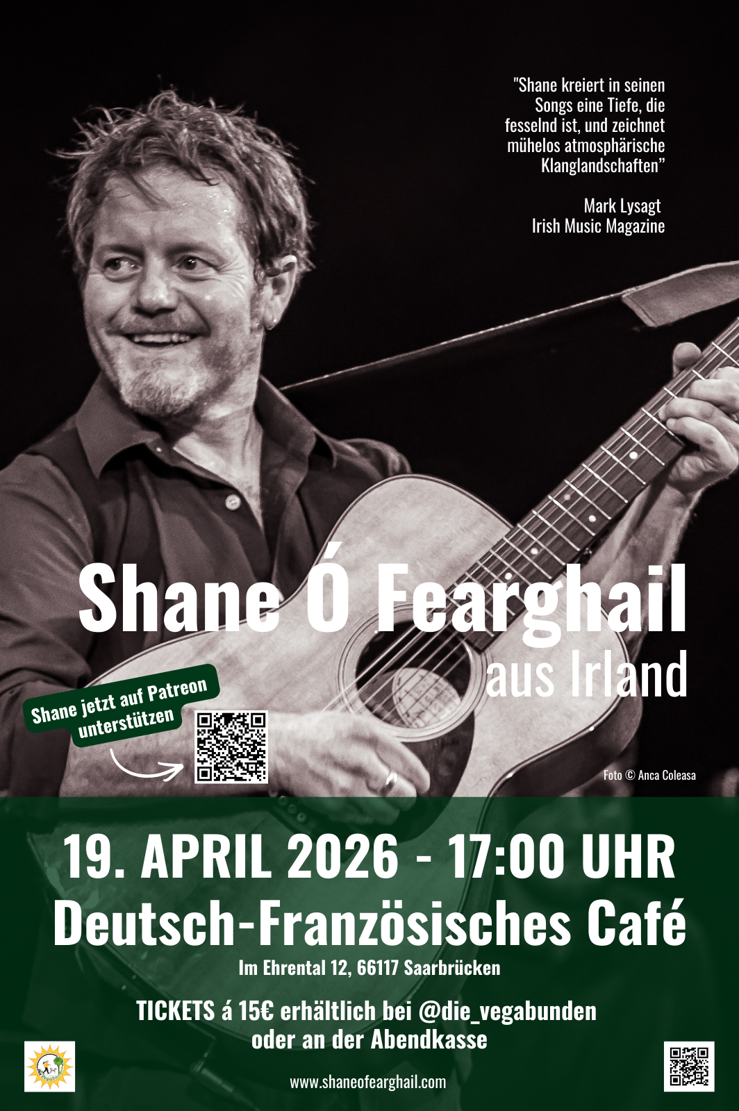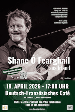 Shane ruturns once more to Saarbrücken to play at the Deutsch-Französisches Café.